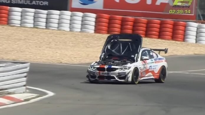 Ο οδηγός Rudi Adams είχε μία πολύ άτυχη στιγμή στο πλαίσιο του αγώνα αντοχής 24 Hours Nürburgring, καθώς άνοιξε το καπό της BMW M4 GT4 στη μέση της πίστας.