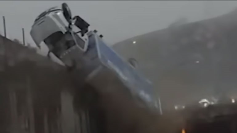 Τα πλάνα κατέγραψε ένας άλλος οδηγός από την dashcam του, ο οποίος δήλωσε πως αδυνατούσε να πιστέψει αυτό που συνέβαινε μπροστά στα μάτια του. Ευτυχώς όμως, τόσο στο SUV όσο και στο φορτηγό που είχαν εμπλακεί στο πρώτο τροχαίο είχαν απομακρυνθεί οι επιβάτες και έτσι δεν τραυματίστηκαν από την δεύτερη πτώση.