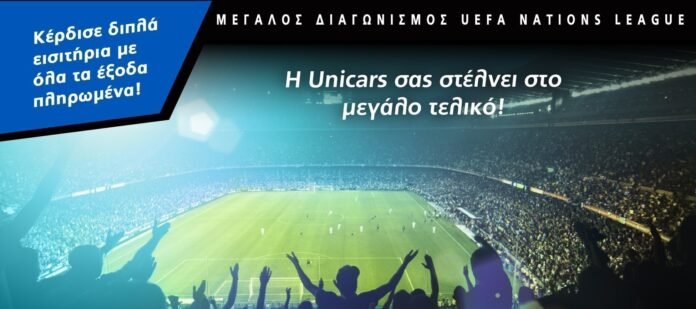 Ο μοναδικός αυτός διαγωνισμός έχει ήδη ξεκινήσει στον ιστότοπο της Unicars και θα διαρκέσει μέχρι τις 10 Μαίου 2019. Τώρα έχετε την μοναδική ευκαιρία που σας προσφέρει η Unicars να ζήσετε μια τεράστια εμπειρία, μαζί με το πρόσωπο της επιλογής σας, στον τελικό του UEFA Nations League με όλα τα έξοδα πληρωμένα!