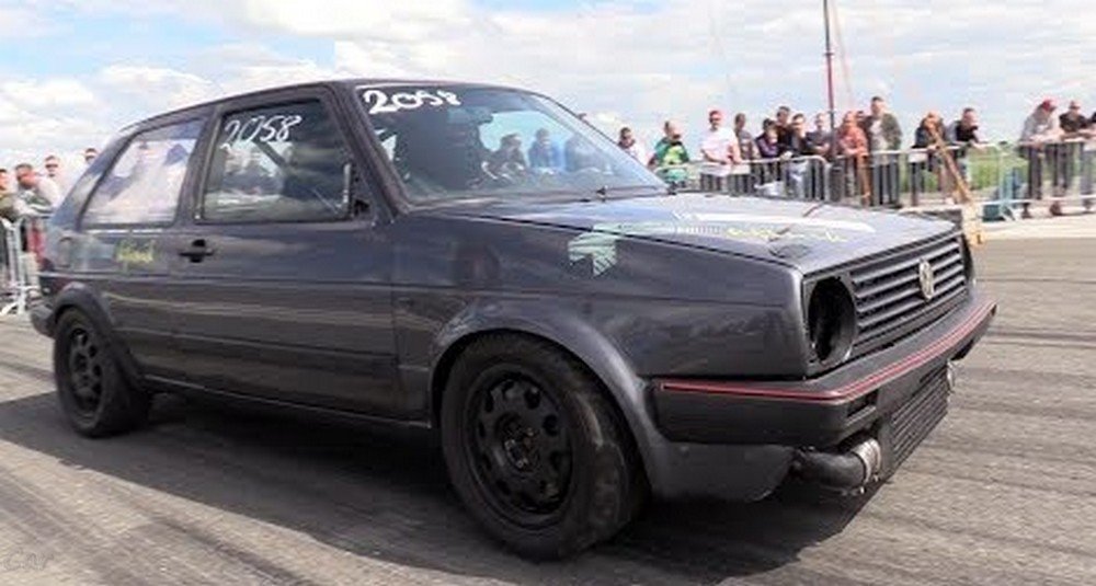 Στην Γερμανία αγωνίζεται αυτό το Golfάκι με VR6 Turbo κινητήρα 950 αλόγων με έξοδο 285 χιλιόμετρα και 17.37 στο μισό μίλι. Δεν το λές και αργό αλλά υπάρχουν και καλύτερα όπως το R32 που παρακολουθήσαμε χθές.